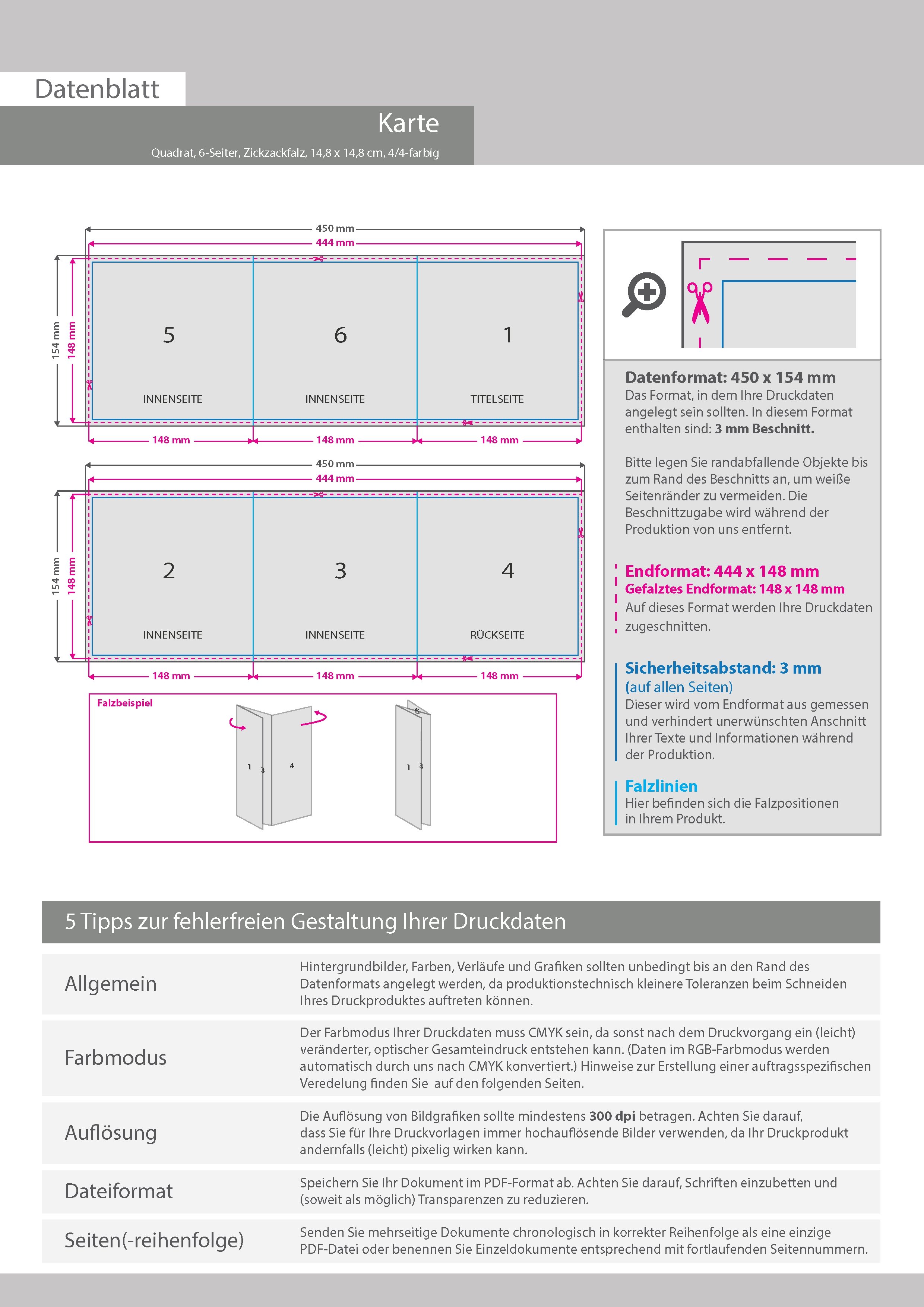 Taufkarte, gefalzt auf Quadrat 14,8 cm x 14,8 cm, vertikaler Zickzackfalz, 6-seitig