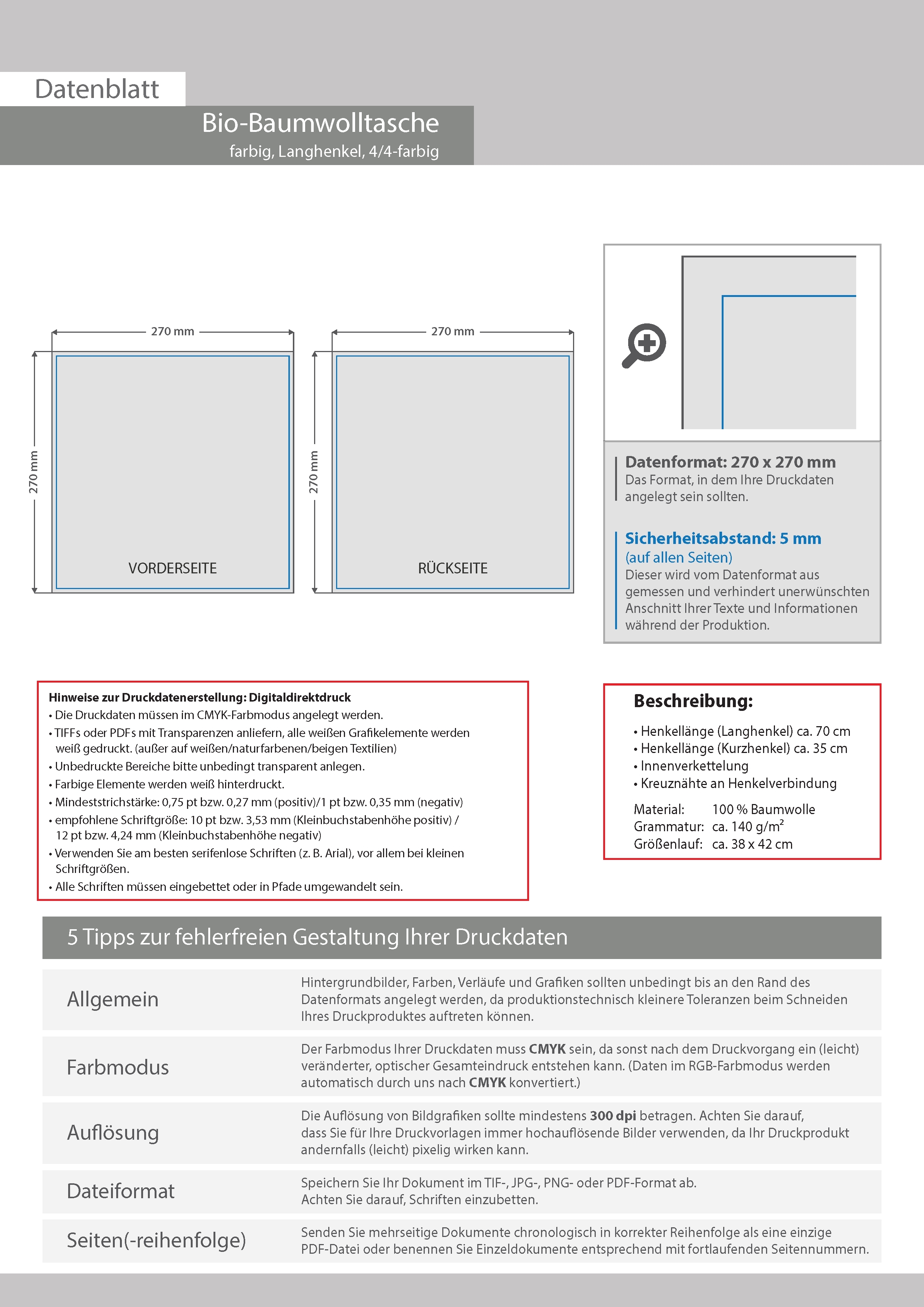 Bio-Baumwolltasche farbig, Langhenkel - 4/4-farbig, beidseitig bedruckt