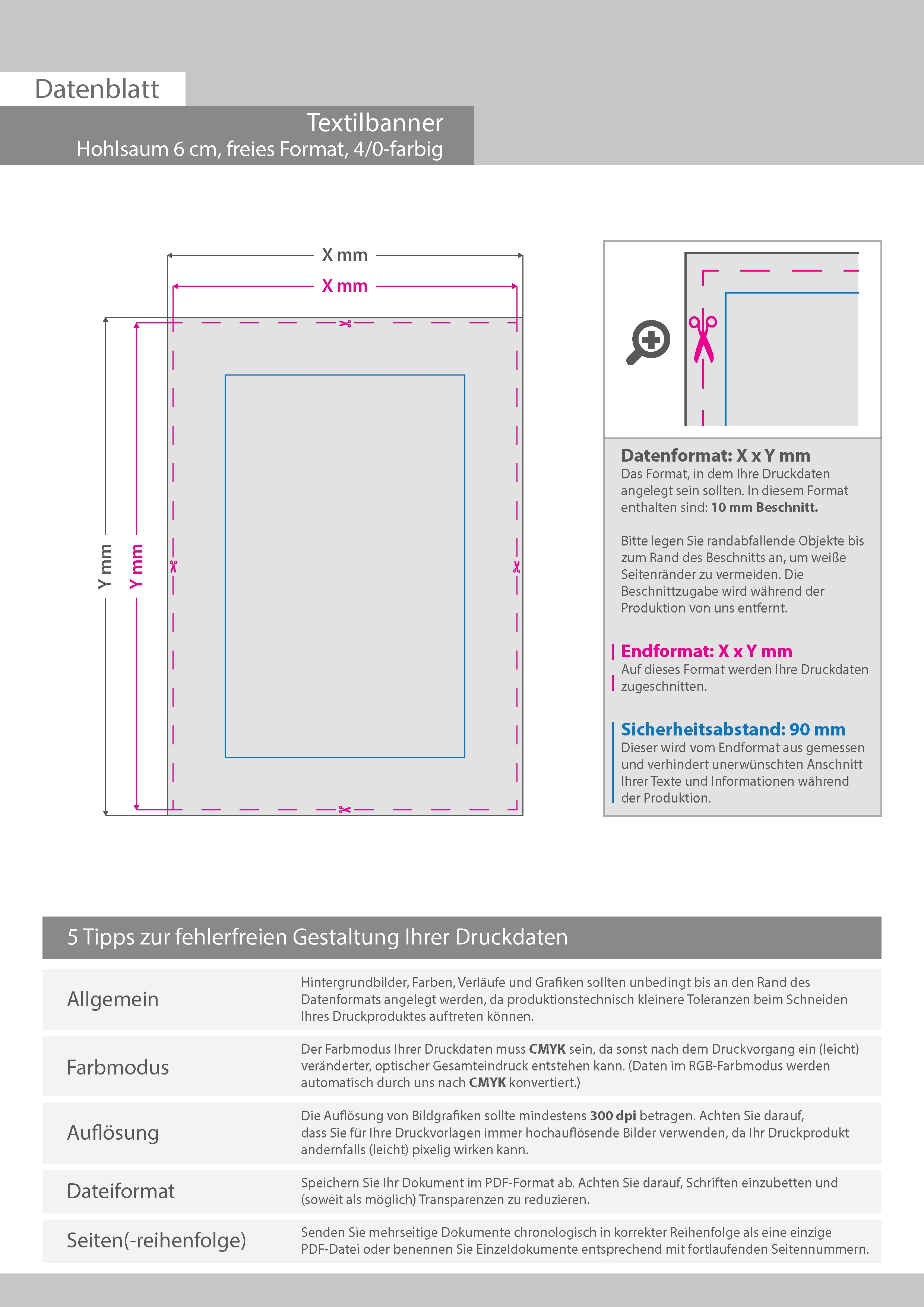 Hochwertiger Stoff-Banner, 4/0-farbig bedruckt, Hohlsaum oben und unten (Durchmesser Hohlsaum 6,0 cm)