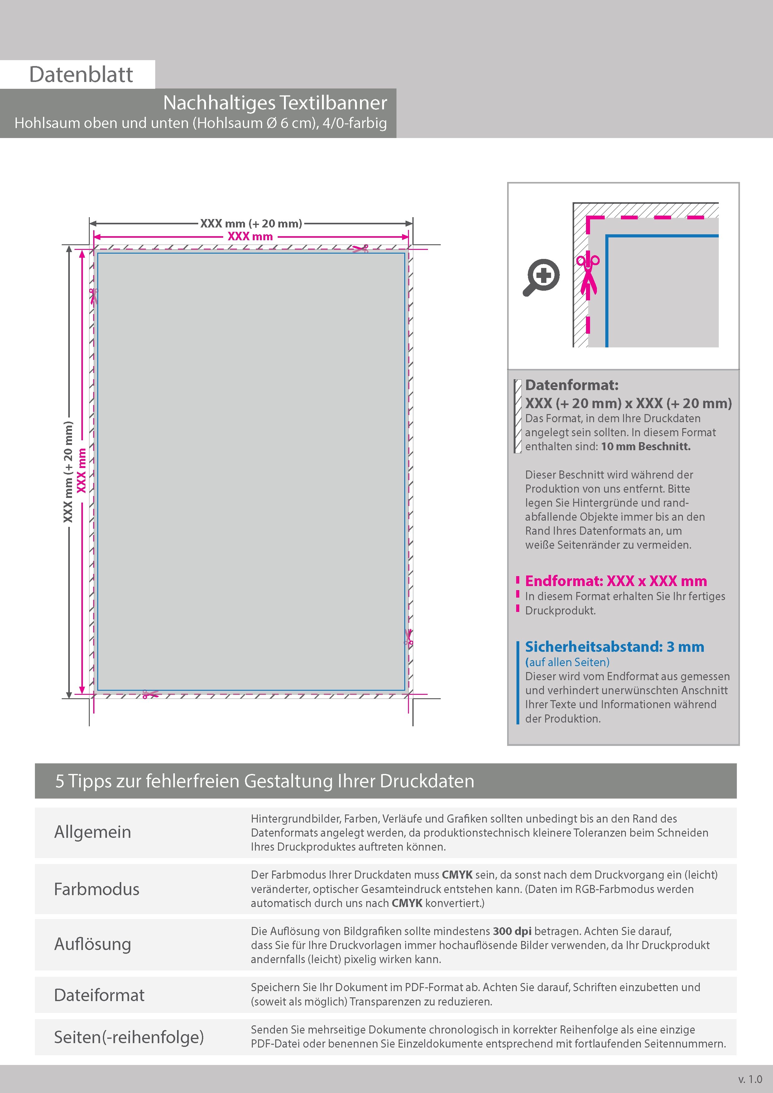 Nachhaltiges Textilbanner, 4/0-farbig bedruckt, Hohlsaum oben und unten (Durchmesser Hohlsaum 6,0 cm)