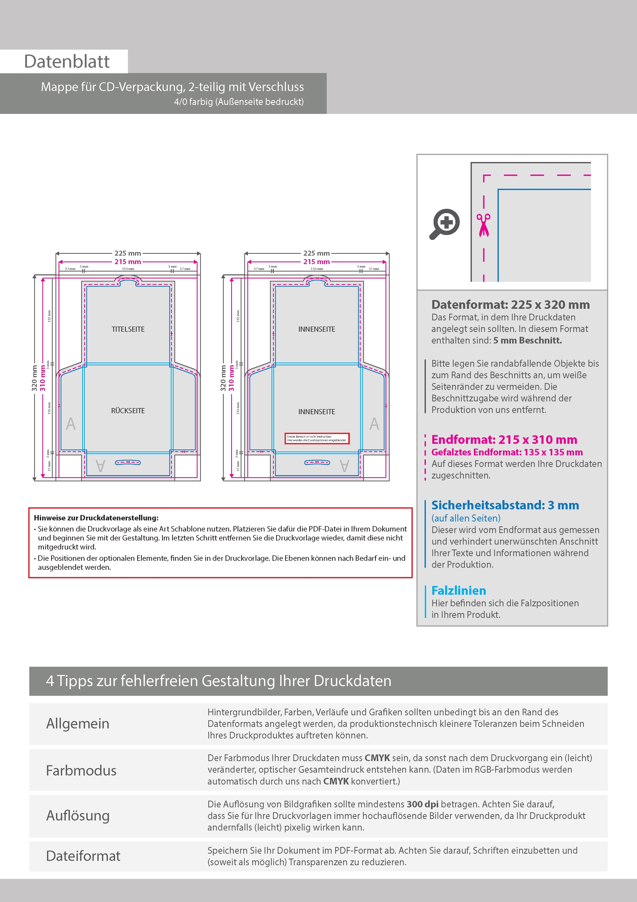 Mappe für CD-Verpackung 13,5 x 13,5 cm, 2-teilig mit Verschluss, 4/0 farbig (Außenseite bedruckt)