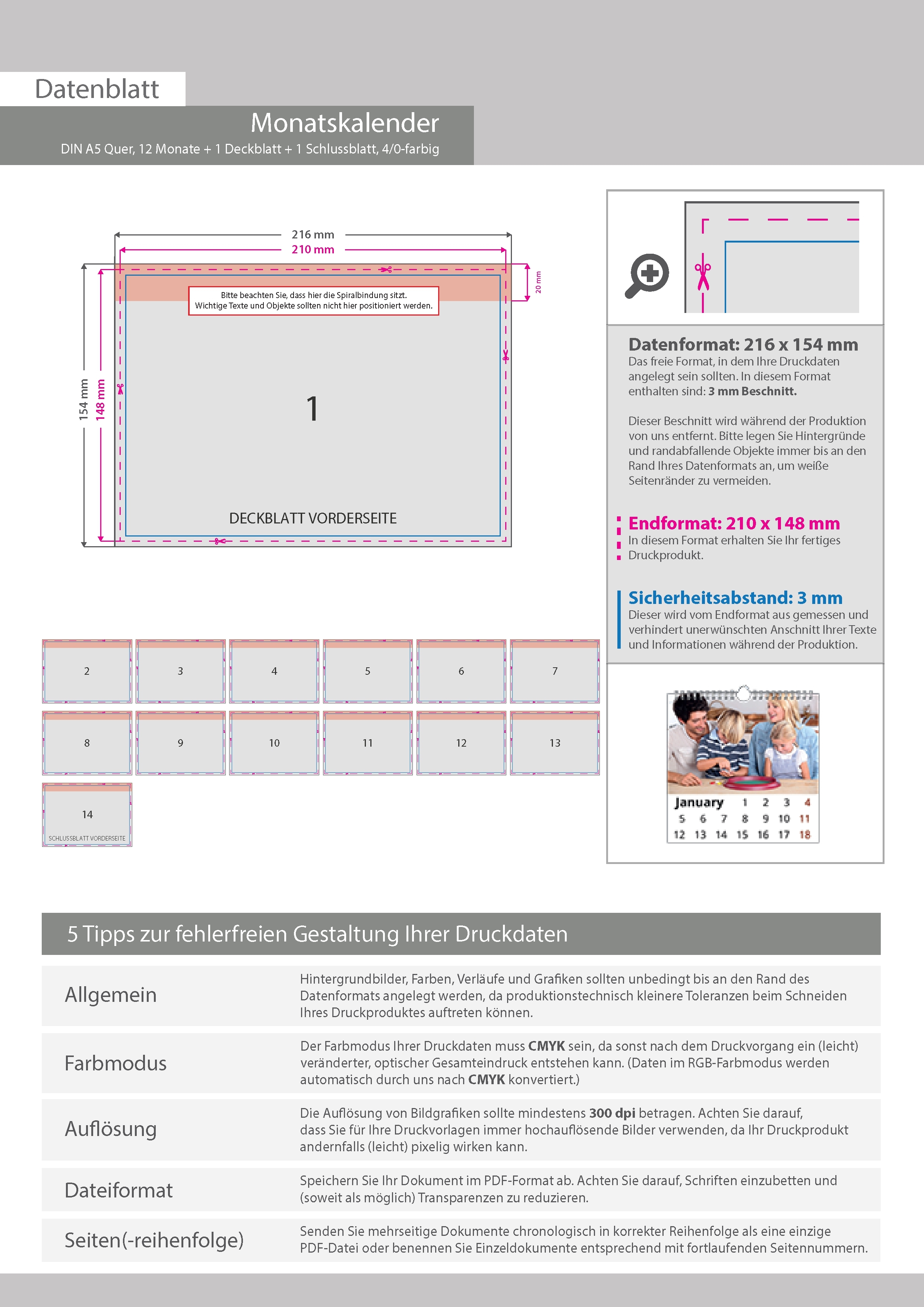 Monatskalender 14 Blatt (12 Monate + 1 Deckblatt + 1 Schlussblatt)