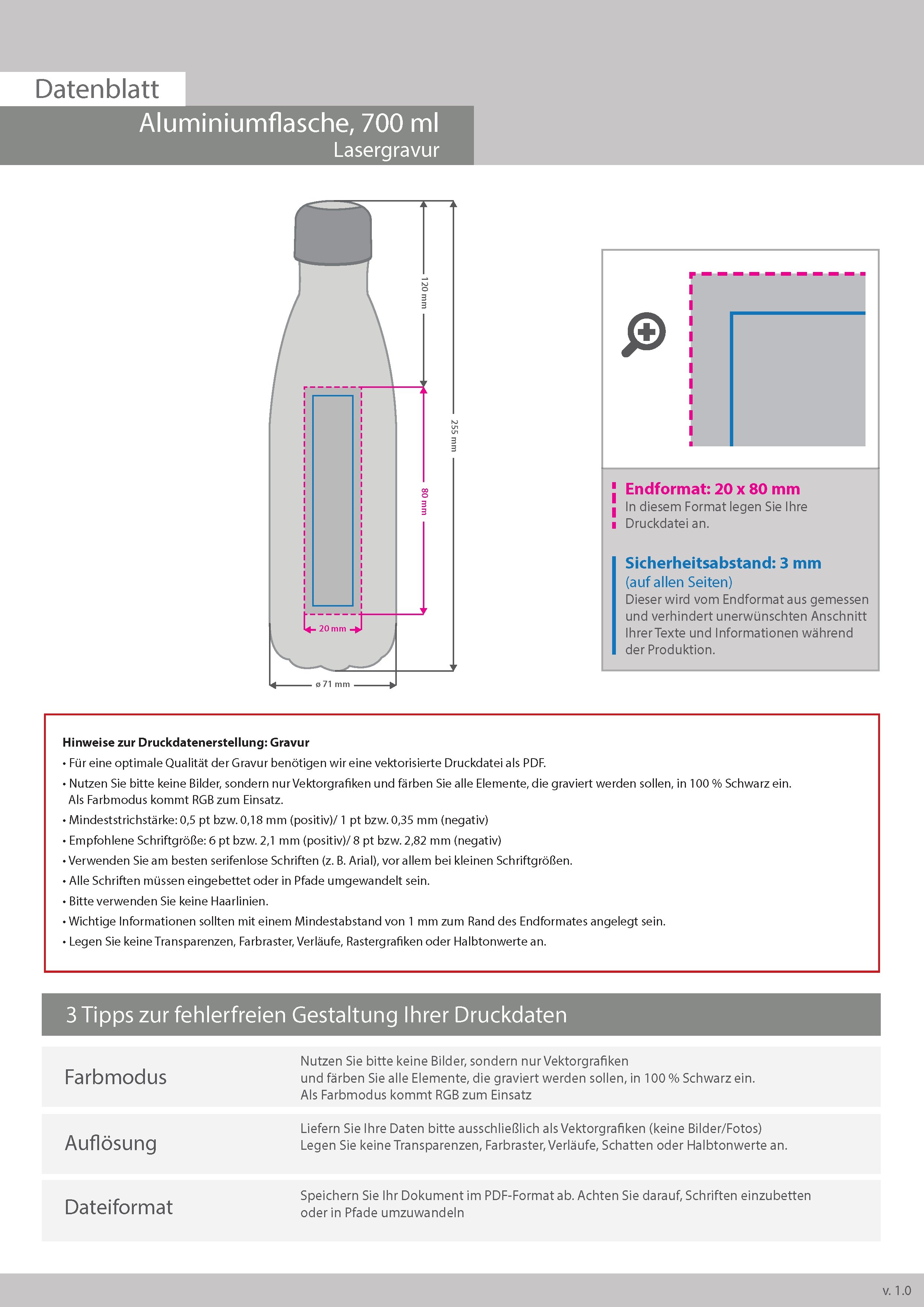 Edelstahlflasche 700 ml mit einseitiger Lasergravur